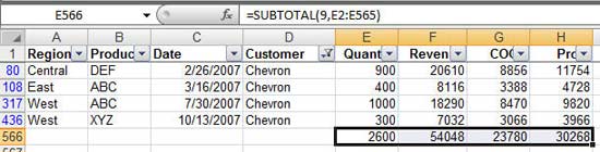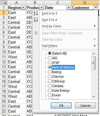 Excel 2007 provides dramatic improvements to the Filter function in Excel. You can quickly filter a list to find a specific customer, records from a certain month, or records highlighted in a certain color.