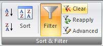 To clear all filters, use the Clear icon on the Data tab of the ribbon.