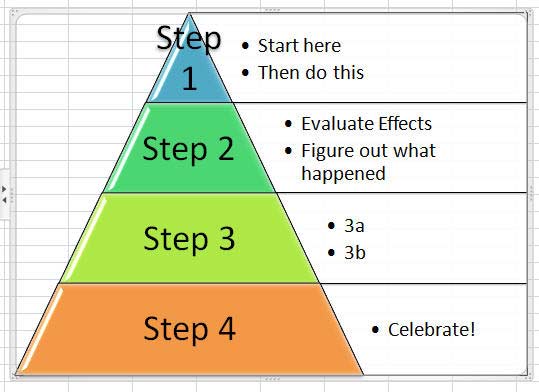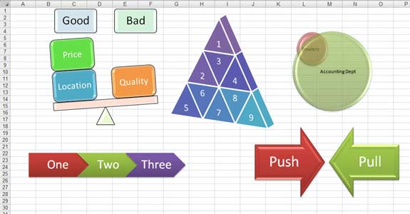 The amazing tip that Microsoft doesn’t tell anyone - how to have the text in SmartArt come from a shape. Normally, values in the SmartArt can not come from formulas in Excel. Here is my workaround: