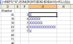 I have three methods below, but they all seem a bit kludgey. For the January 2007 challenge, try to find a better way to create a stem and leaf plot. The prize is TBD and will be awarded to the best non-VBA solution to the problem.