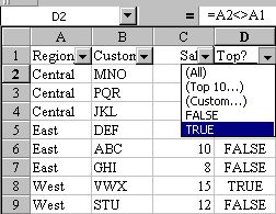 - In Cell D1, enter the heading “Top?”. In cell D2, enter the formula
