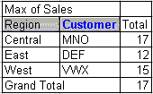 - Click Finish to finish the pivot table. You get the pivot table shown below. Note that the Customer button has a font in blue to alert you that it has the Auto Show selected.