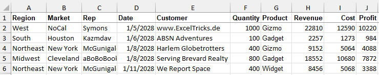 The power of pivot tables is the ability to rearrange the fields. If your manager decides you should put Regions across the top and products down the side, it is two drags to create the new report. Drag product to Rows. Drag Region to Columns.
