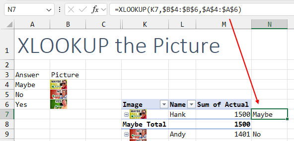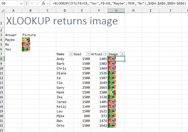 Here is an example where the lookup value is an image and it returns adjacent text from the lookup table.