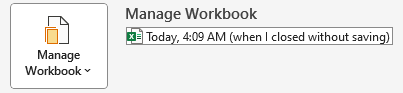 While you are editing a workbook, you can access up to the last five AutoRecover versions of a previously saved workbook. You can open them from the Versions section of the Info category. You may make changes to a workbook and want to reference what you previously had. AutoRecover versions open in another window so you can reference, copy/paste, save the workbook as a separate file, etc. New: If your file is saved in OneDrive.