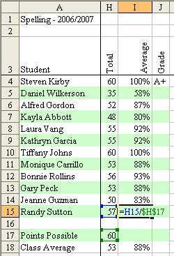 Using Excel to Track Student Grades