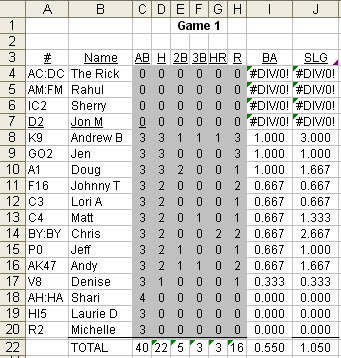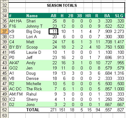 This summer, MrExcel.com is sponsoring the Toronto 'Cellers. softball team. When the team is sponsored by MrExcel.com, they not only need to play well, but they have to have the best stats workbook of anyone in the league!