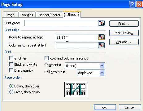 - Select the 4th tab in the dialog box - the Sheet tab.