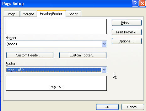 - Select the 3rd tab in the dialog box - the Header/Footer tab.