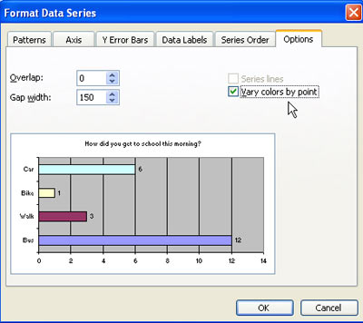 In your classroom, your students take a survey of the class and they want to display the information on a bar chart.