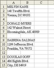 The goal is to record a tiny macro that will solve one record. You want the cell pointer to be on the name to start. The macro should move the two fields over, delete the three blank rows, and end up on the next name. This way, you can run the macro over and over.
