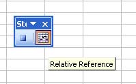 The second button is the Relative References button. If you simply recorded the macro now, Excel would hard-code that you wanted to always move