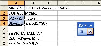 A2 to B1 and A3 to C1. This works fine for one record, but you need the macro to work for all records. Turn on Relative Recording by clicking the Relative Recording button. It is a toggle, so you want it to look like it is pressed in.