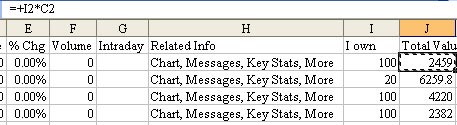 Or, you might just copy and paste the table to Excel. Either way, you will then have to add columns and formulas to total the value of your portfolio. There is a better way.