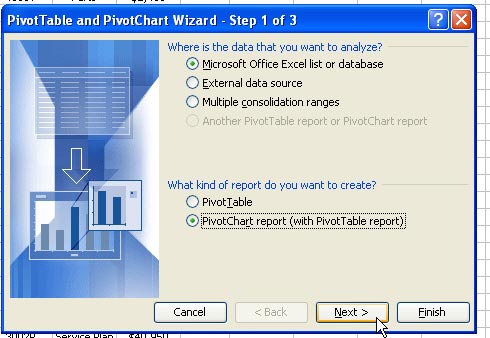 In Step 1 of the Wizard, select Pivot Chart