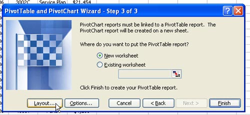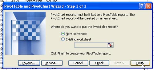 Click Finish to create the Pivot Chart on a new worksheet.