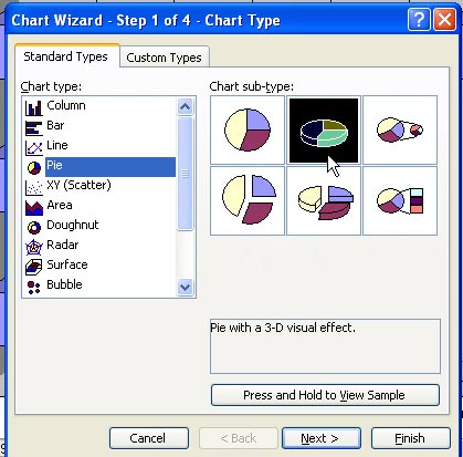 Choose the Pie chart type and then the 3D pie subtype