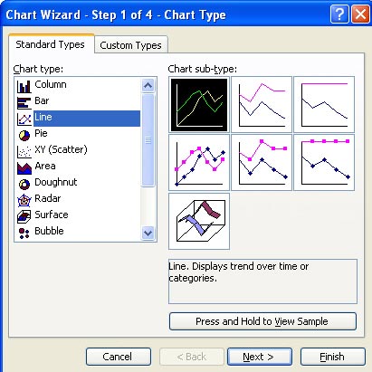 Choose the Chart Wizard icon in the Pivot Table toolbar. Change to a Line style.