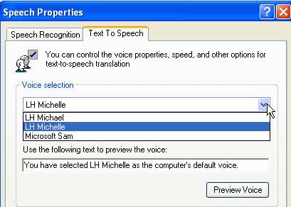 To turn this feature on, visit Control Panel – Speech – and select the least annoying of the three voices available on the Text to Speech tab.