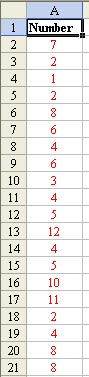 Using cut and paste, copy the numbers into a single column of data. Add a heading in cell A1.