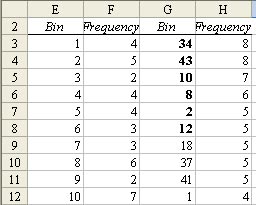 In column C, set up a Bin range. This is simply the numbers from 1 to 49.