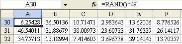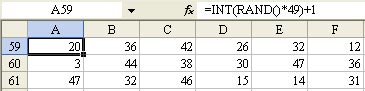 If you use =INT(RAND()*49)+1, Excel will return numbers from 1 to 49.