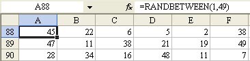 Scientists will argue that the lottery balls have no memory. If the machine is truly random, the fact that a number has come up recently does not mean that it will come up again. If you believe this, then you should select truly random numbers. Excel has a =RAND() function to help with this. If you enter =RAND() in a number of cells, you will have a variety of numbers in the range of 0 to 0.9999999.
