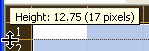 Click in the row labels, between row 1 and row 2. When you click, a tooltip appears to tell you that your Row 1 is 17 pixels tall. You should really do this step on your computer, because the height of the row depends on your default font. Since I changed my default font from Arial to Times New Roman, my row height might start off differently than yours.