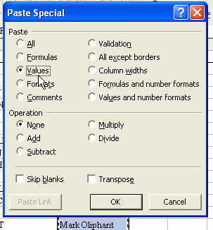 Instead, select the data in column C and use Edit – Copy, then Edit – Paste Special Values to convert the formulas to values.