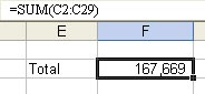 If you want to total the sales, a simple SUM() function will work. =SUM(C2:C29).