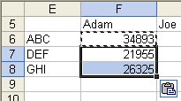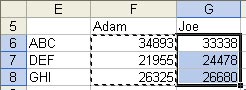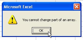 There is one last consideration before copying the formula to the rest of the table. Your inclination might be to copy F6 and paste to F6:G8. If you try this, Excel will give you the puzzling "You Can Not Change Part of an Array" message. Excel is complaining that you can not paste a CSE formula into a range that contains the original CSE formula.