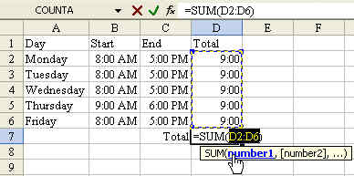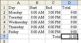 There is a subtle problem when you are using a time sheet. If you attempt to total up times exceeding 24 hours, the answer will be wrong. This is because Excel only shows you the times in excess of a complete day.