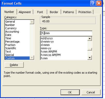 To correct this, select Format - Cells. Choose the Custom number format. Instead of a format like h:mm, put the h in square brackets: [h]:mm