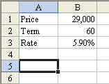 Open a blank spreadsheet and enter three lines with Price, Term and APR Interest rate.