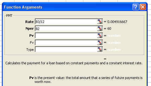 Touch cell B2. Tab to the PV field to see that PV is the present value.
