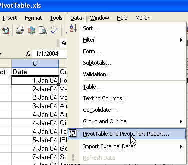 From the menu, select Data > Pivot Table and Pivot Chart Report.