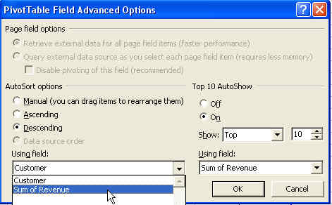 Click OK to close this dialog. Click OK again to close the Field Settings dialog. The result is a report of the top customers, high-to-low.