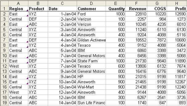 Your data should have no entirely blank rows or columns. There should be a unique heading above each column. You should make sure that the headings are in a single row instead of spanning two or three rows. My sample data is several hundred rows of invoice data.