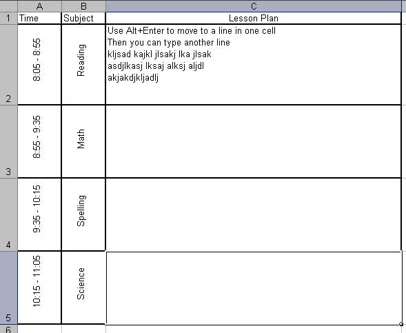 - For column C, use Format - Cells - Alignment - Wrap Text