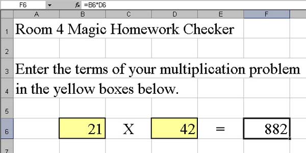 In the first example, the student enters the problem and the answer is shown. The formula for F6 is =B6*D6: